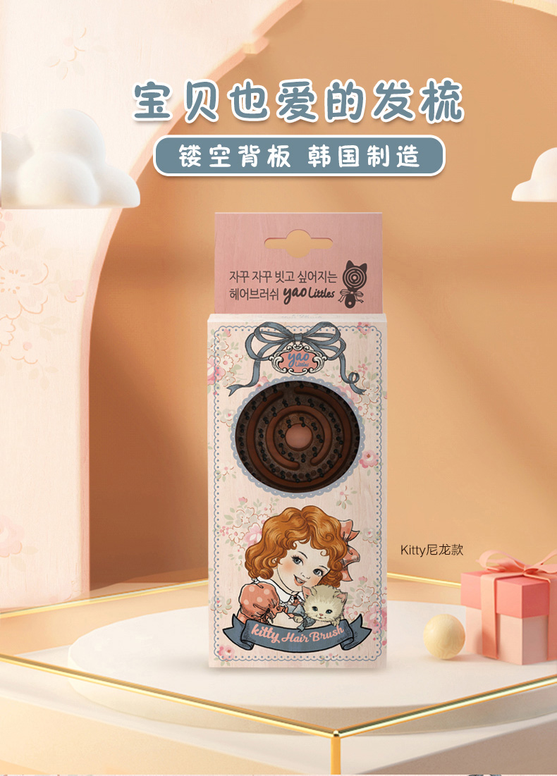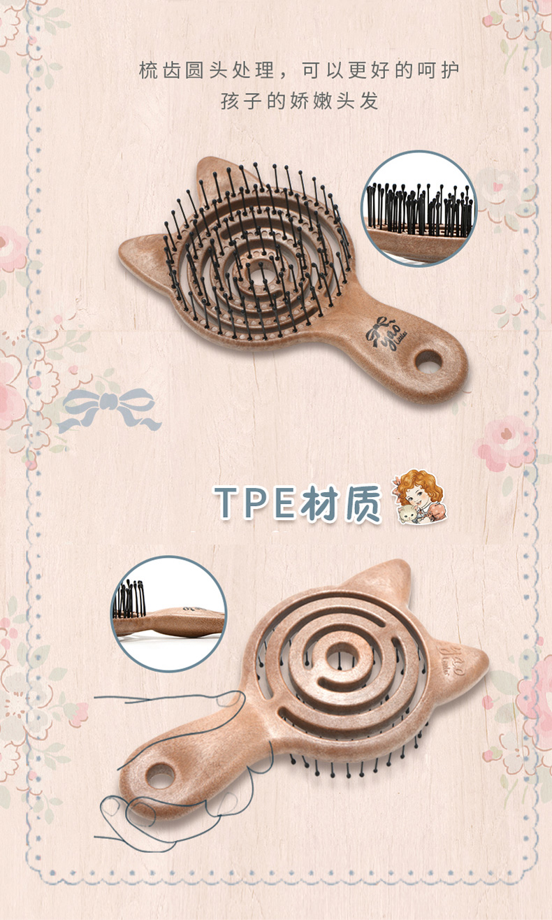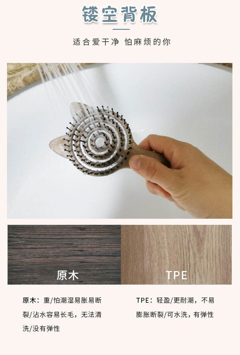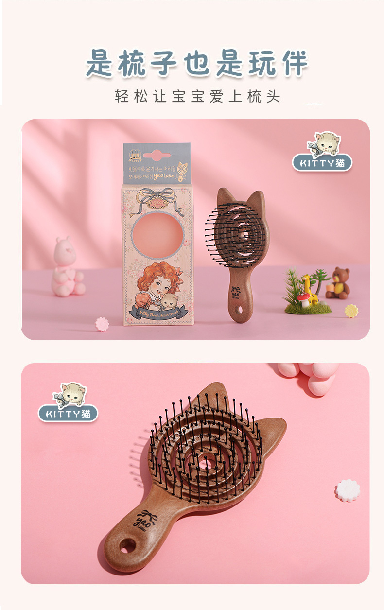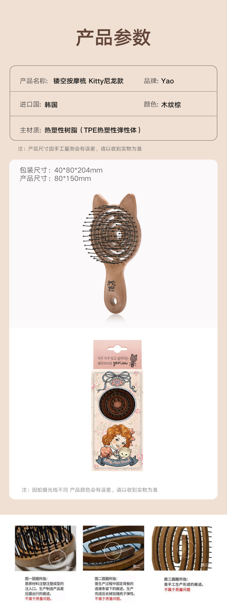 镂空按摩梳 Kitty尼龙款 木纹棕