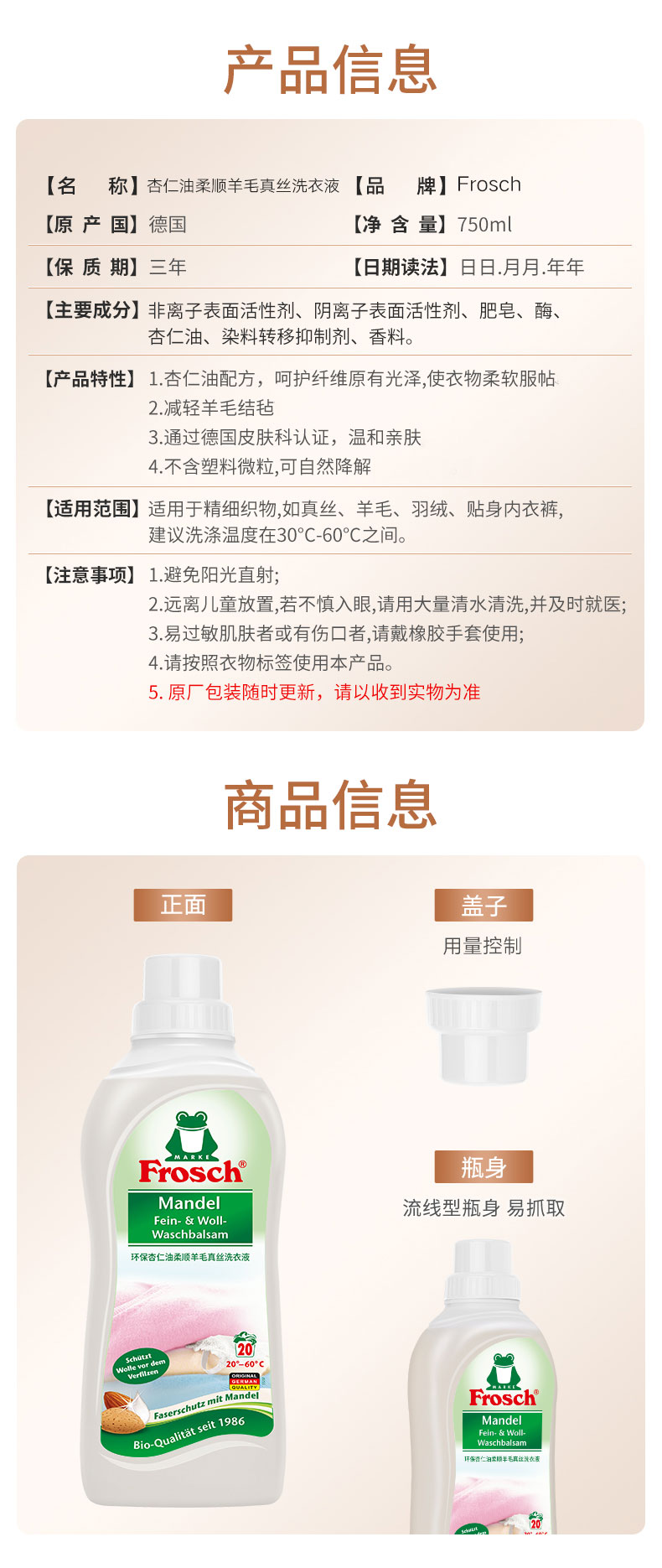 杏仁油柔顺羊毛真丝洗衣液 750ml