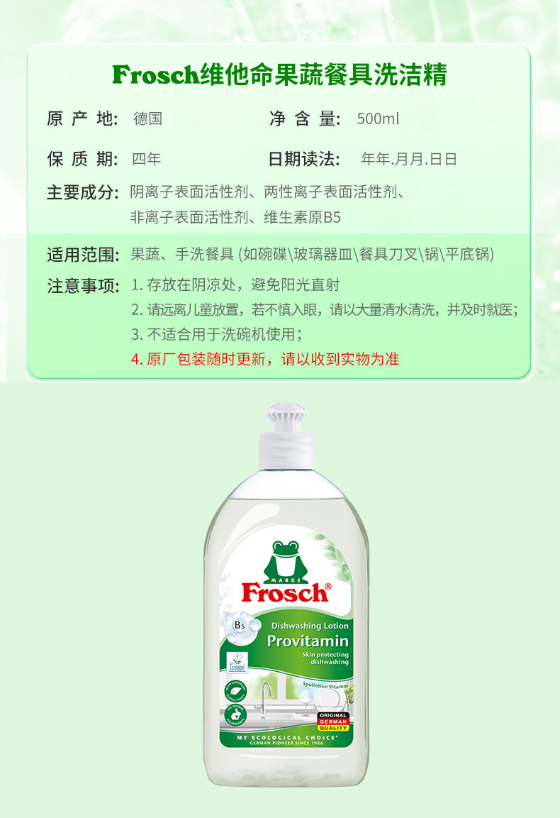 果蔬餐具洗洁精 维他命B 500ml